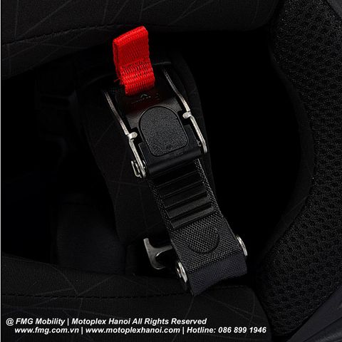Khóa kim loại bền chắc chất lượng cao, đi kèm với một thanh nhựa dẻo có các nấc để thao tác khóa mũ dễ dàng và tiện lợi. Chỉ một tiếng “click” nhẹ là mũ của bạn đã được cài chặt rất an toàn. Thao tác mở khóa lại càng nhanh chóng và dễ dàng hơn khi chỉ cần kéo thả phần dây ruy băng trên khóa. Dây quai có thể điều chỉnh dài ngắn tùy theo kích cỡ vòng đầu của người đội.